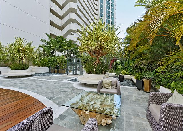 2010年に完成したアルーア・ワイキキの敷地内には、2,900平米を超えるトロピカル庭園、リゾートスタイルのプール、ジャグジー、BBQグリルが設置されたバーベキューデッキ、フィットネスジムが併設し、コンドミニアム施設も充実。敷地内に24時間セキュリティも常駐しておりますので、安全面でも安心のコンドミニアムです。