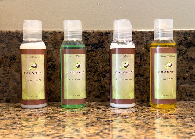 ・トラベルサイズ(約60ml)のシャンプー、リンス、ボディーウォッシュ、ローション