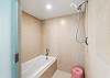 ・シャワーエリアとバスタブを備えたバスルーム(ハンドシャワー付き)