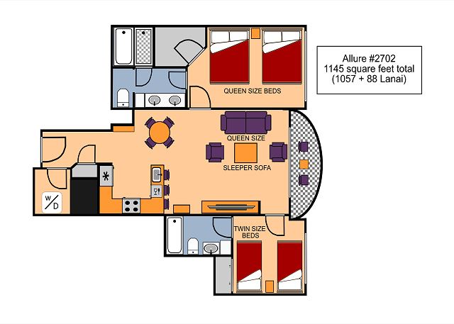 - ベッド数、サイズ 2 Queen, 2 Twin, 1 Sleeper