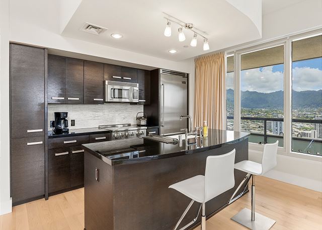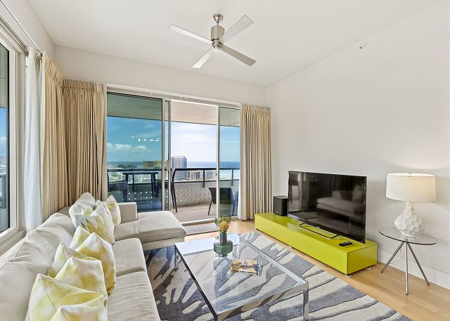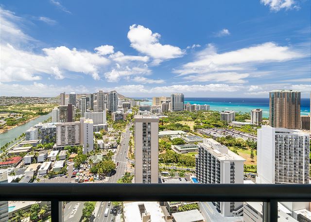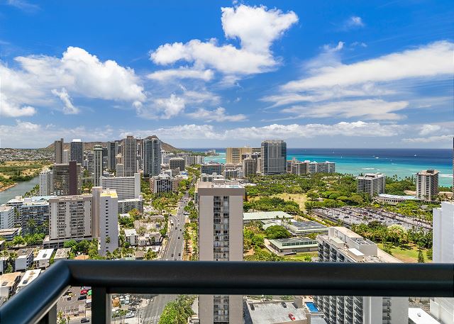 Allure Waikiki Penthouse #3504 - 【アルーア ペントハウス#3504】ワイキキの入口にあるラグジュアリー・コンドミニアムの最上階ペントハウス。35階からワイキキとオーシャンビューを見下ろす絶景の2ベッドルーム/2バス。無料Wi-Fi、無料駐車場、室内洗濯機/乾燥機、セントラルエアコン、フルキッチンも完備の月極レンタル