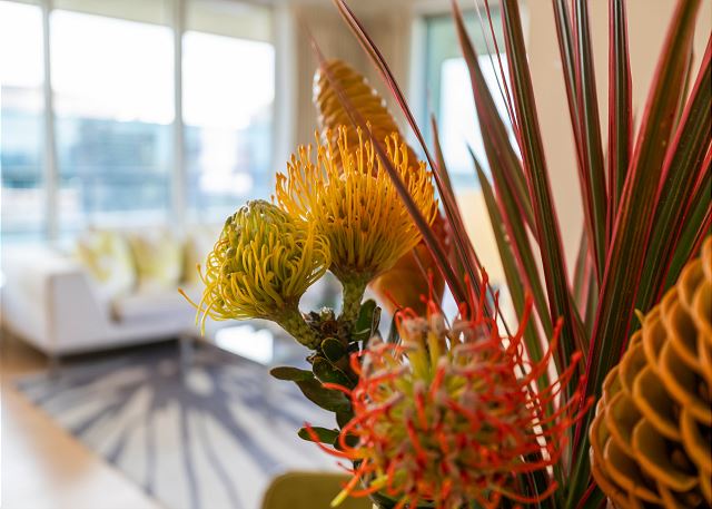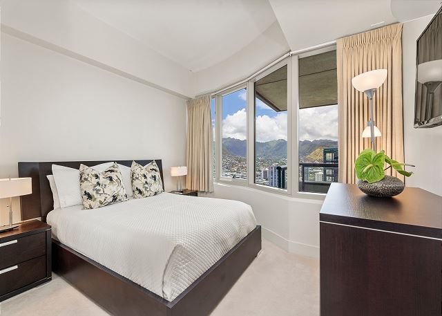 ワイキキの端にある、静かな高級コンドミニアム「アルーア・ワイキキ」の最上階35階のラグジュアリーな2ベッドルーム・2バスのペントハウス。上質な家具をそろえたリビングは大きい窓で囲われており、明るい空間でリラックスした時間をお過ごしください。上質な家電をそろえたフルキッチンではいつでもお料理を楽しめます。お部屋はセントラルエアコンで夏でも快適にお過ごしいただけ、無料ハイスピードWi-Fi、室内に便利な洗濯機・乾燥機を完備。無料の館内駐車場1台分付き。最上階のプライベートラナイからは遠くに広がるオーシャンビュー、ワイキキを見下ろすシティービュー、運河やゴルフコース、ビルの奥にはダイアモンドベッドの頂上まで臨むことができます。ハワイの風を感じながら朝食を食べたり、ドリンクを片手にゆったりとした贅沢な時間をお楽しみください。レストラン、ビーチ、アラモアナショッピングセンター、インターナショナルマーケットプレイス全て徒歩圏内!バス停も近くにあり、好立地でどこへ行くにも大変便利です。