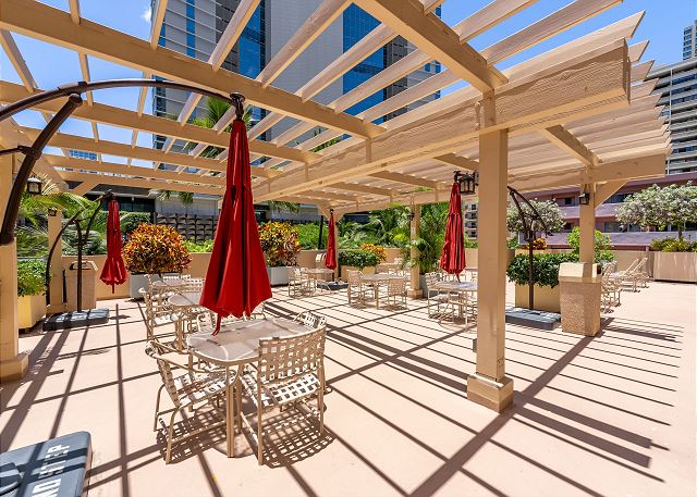 フォーパドルの25階建てのビルの5階には レクレーション施設が有り、大きなプールとサンデッキ、サウナ、それにバーベキュー施設とちょっとしたディナーで集えるピクニック・エリアもあります。各部屋に洗濯機/乾燥機が完備され、ユニットに付いて来る駐車場以外にゲスト用のパーキングもあります。 コンドミニアムの入り口には24時間体制で警備員が常駐していてセキュリティーは万全です。 サラトガ通りに有るパンケーキで有名な『エッグス&シングス』もワイキキ・ビーチまでもほんの数分です。フォーパドルは家族旅行のリピーターで年中賑わっています。
