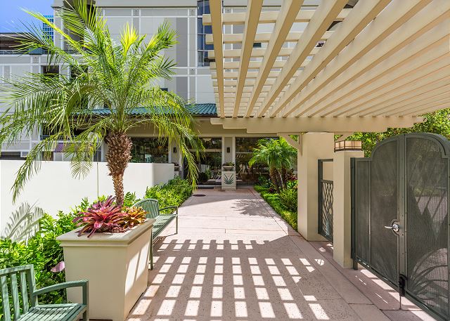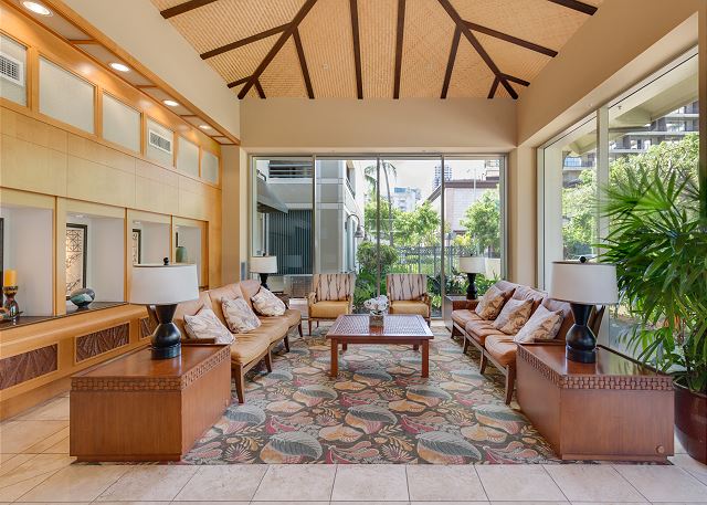 細かくデザインされた美しい室内照明。モダンでありながら木目の色調で落ち着いた生活空間をお楽しみいただけます。エアコン、室内に洗濯機・乾燥機、24時間の安心なセキュリティー完備。立地条件も素晴らしく一歩外に出れば新しい開発で益々魅力的なクヒオ通り。一階の敷地内には美しい庭園とバーベキュー・エリア、大きなプールが贅沢に作られています。一味違うハワイをお楽しみください。