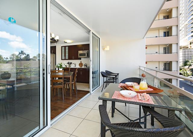 ・広々としたラナイ(バルコニー)へのアクセス(テーブル&椅子あり)