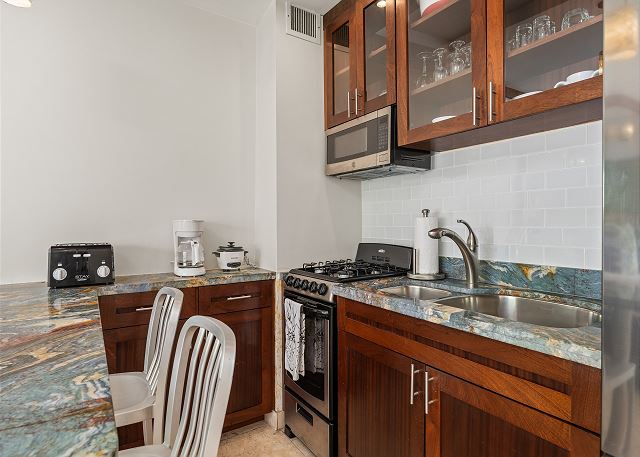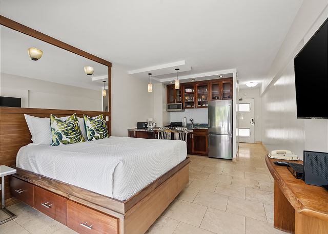 Waikiki Shore #314 - 【ワイキキ・ショア #314】ビーチはすぐ目の前!パーシャルオーシャンビューのスタジオワンルーム。フルキッチン、エアコン、室内洗濯機&乾燥機、無料室内Wi-Fiも完備!