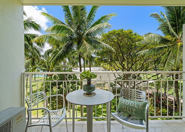・パークビューとパーシャルオーシャンビューのプライベートラナイへのアクセス(テーブルと椅子をご用意しております)