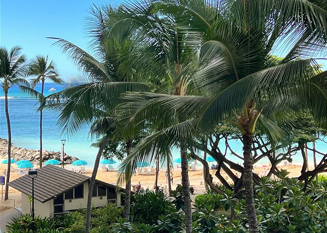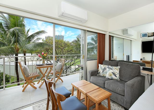 Waikiki Shore #414 - 【ワイキキ・ショア #414】ラナイで海からの風を感じながら、木々の間に覗く美しい海、パークビューでリラックスできるスタジオワンルーム。室内に洗濯機・乾燥機、無料Wi-Fi完備。海はすぐ目の前!