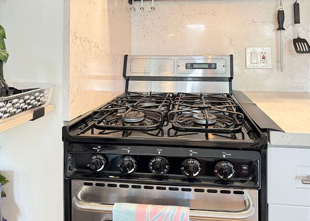 ・キッチン家電完備(4口ガスコンロ/オーブン、冷蔵庫、電子レンジ、コーヒーメーカー、炊飯器)※食洗機はありません